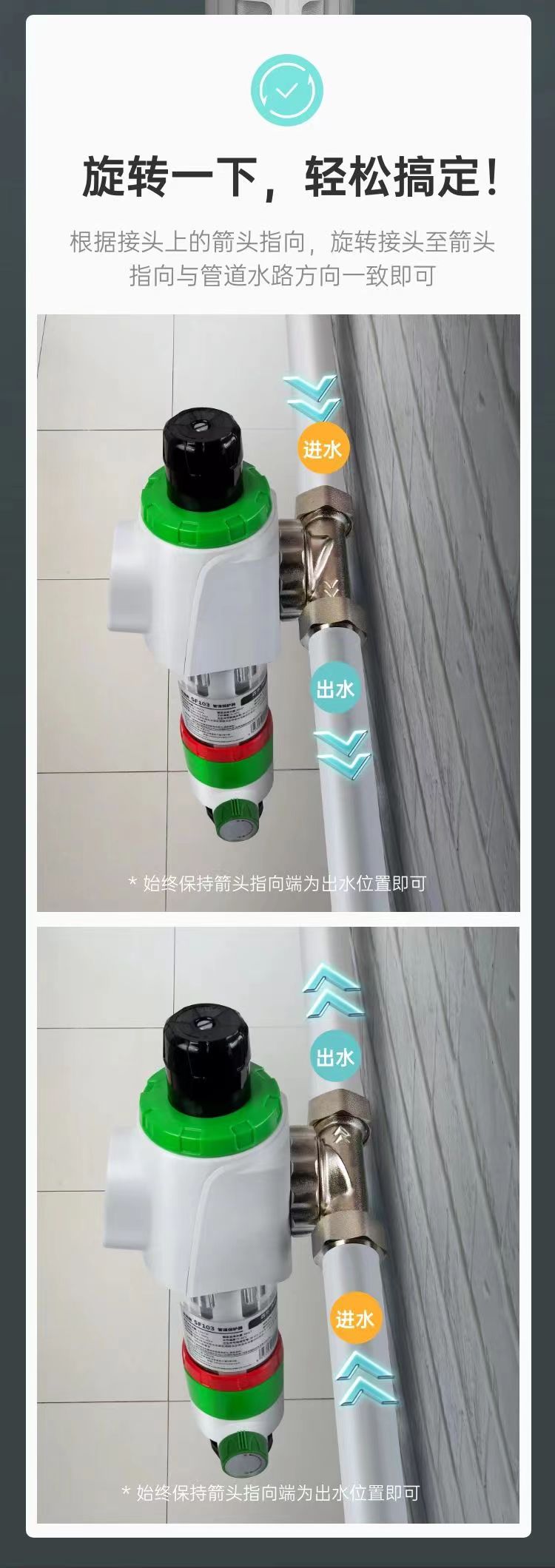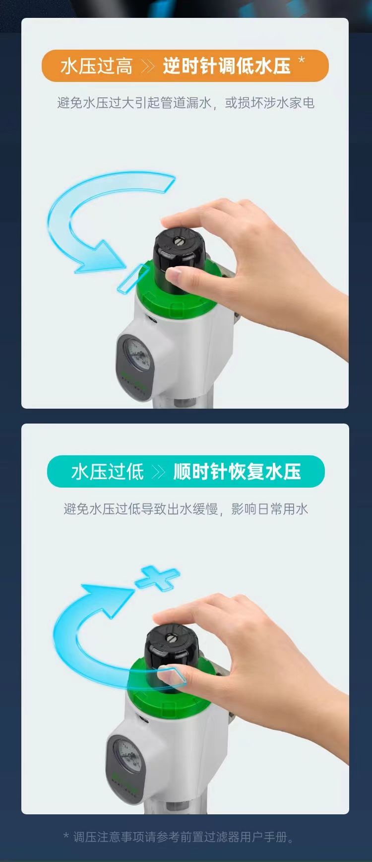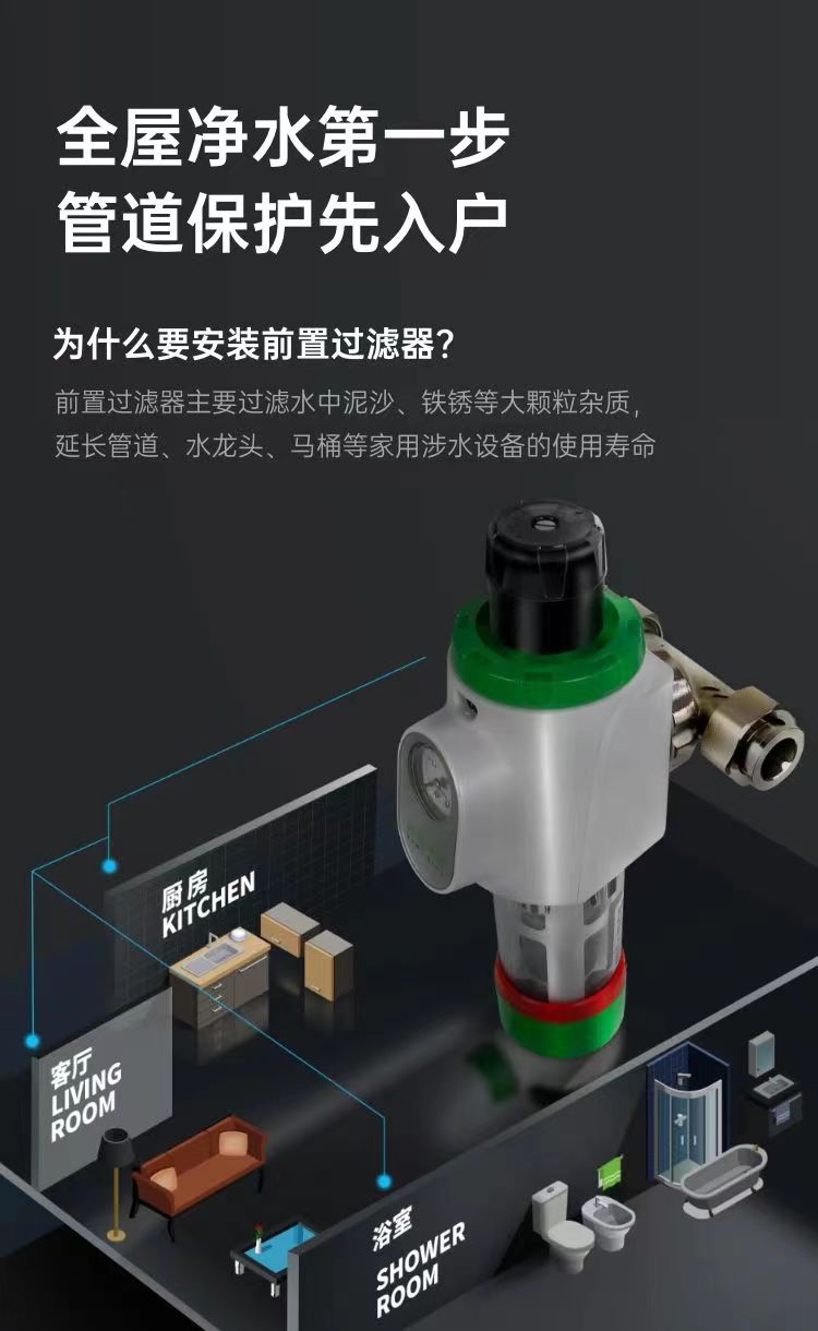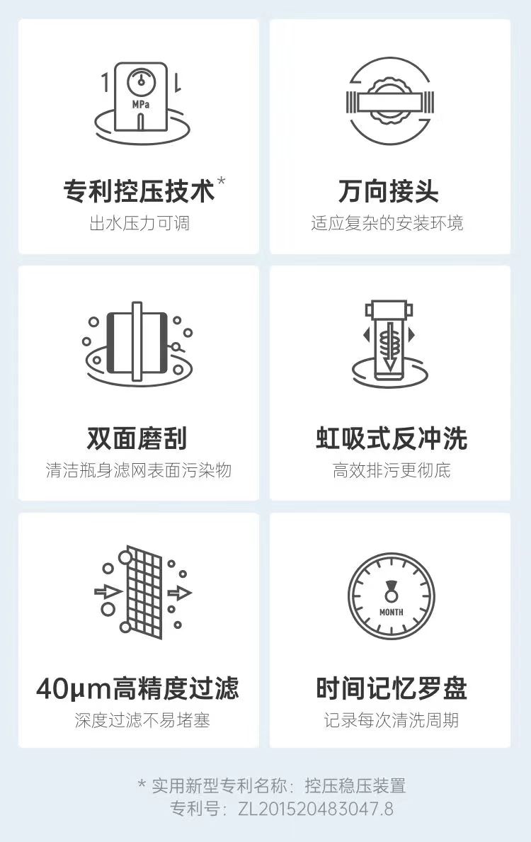 森乐·冰润SF103管道保护器配有活塞式控压组件,同时采用“环绕虹吸+双面刷洗+净水反冲”三合一技术,高效去除水中颗粒污染物,同时还可以有效消除水锤,稳控水压。