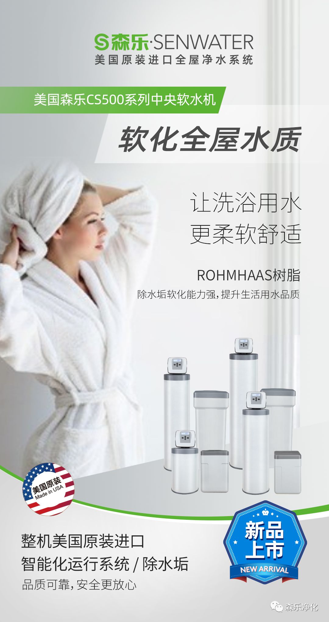 软水沐浴不但对皮肤大有益处(硬水中的金属离子会损害皮肤),而且能有效减少洗发水、沐浴液等化学液剂的用量。沐浴之后、发肤更柔顺、丝滑。