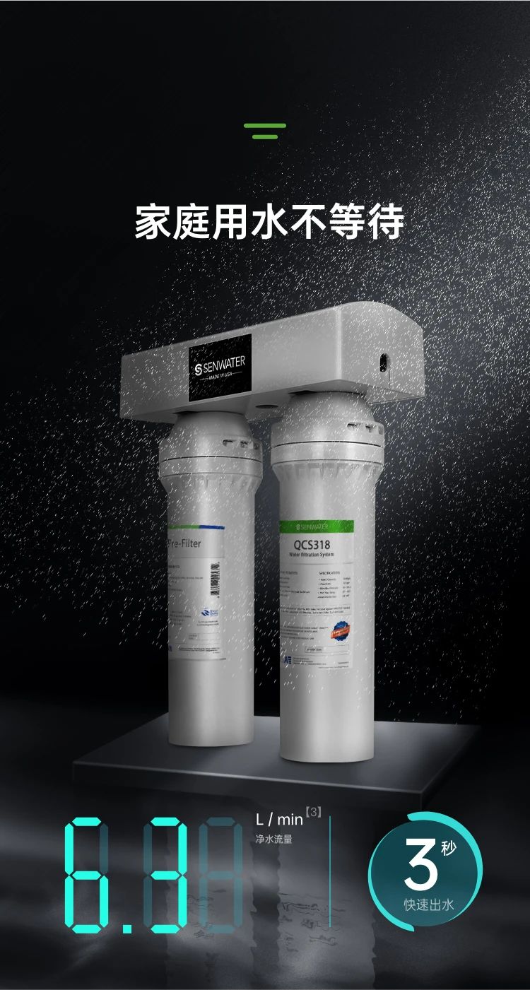 森乐QCS508净水机是森乐直饮机中的旗舰产品,针对中国市场专门进行优化设计,滤料升级为Aquabond技术的超微聚合炭粉,进一步加强对特殊污染物的去除能力;通过NSF42&53专业认证,可以去除水中消毒剂、化学物、有机物、铅和重金属,保留矿物质。