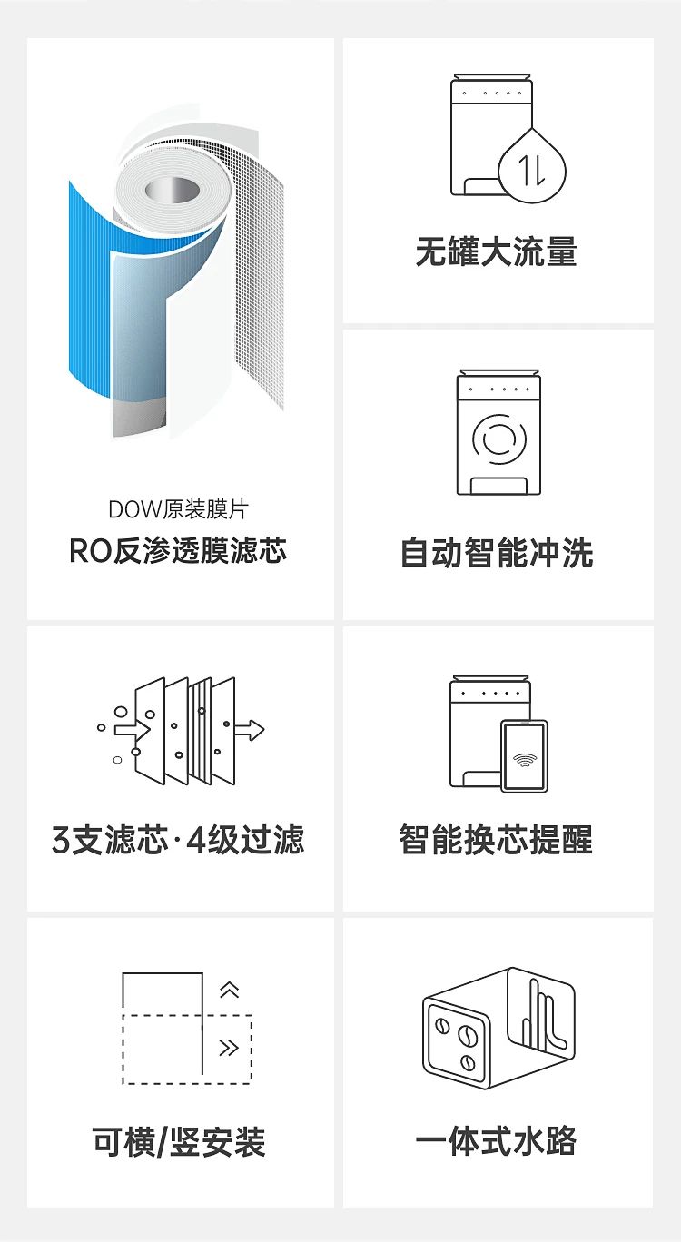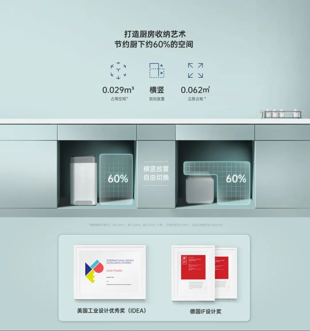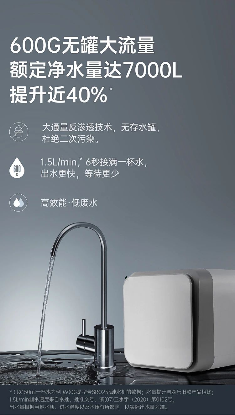 很多用户装修时预留的安装空间太小,无法安装净水器,SRO255采用方形设计,体积很小,完全不用担心空间问题。无罐大流量系统去除了水罐,不仅节省了安装空间,出水也更迅速,无需等待。