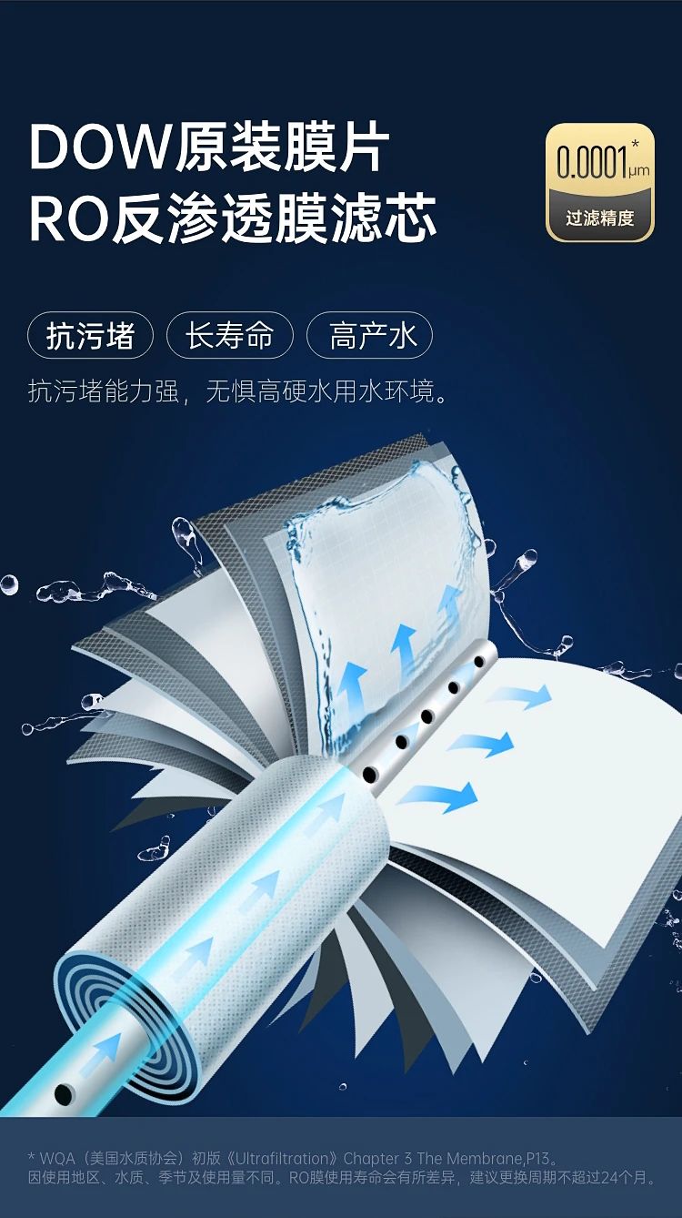 RO反渗透膜具有浓缩、提纯和分离的功能,同时又具有无污染、易操作等诸多优点。重金属、细菌、病毒、水垢等也能够轻松拦截。