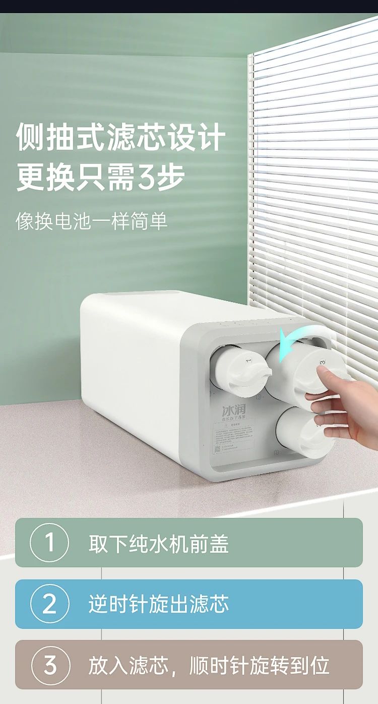 在更换滤芯时SRO255减去了不必要的拆卸步骤,采用卡接式滤芯,关闭滤芯打卡前盖单手轻旋即可更换,简单快捷。专利S形把手更容易握持。