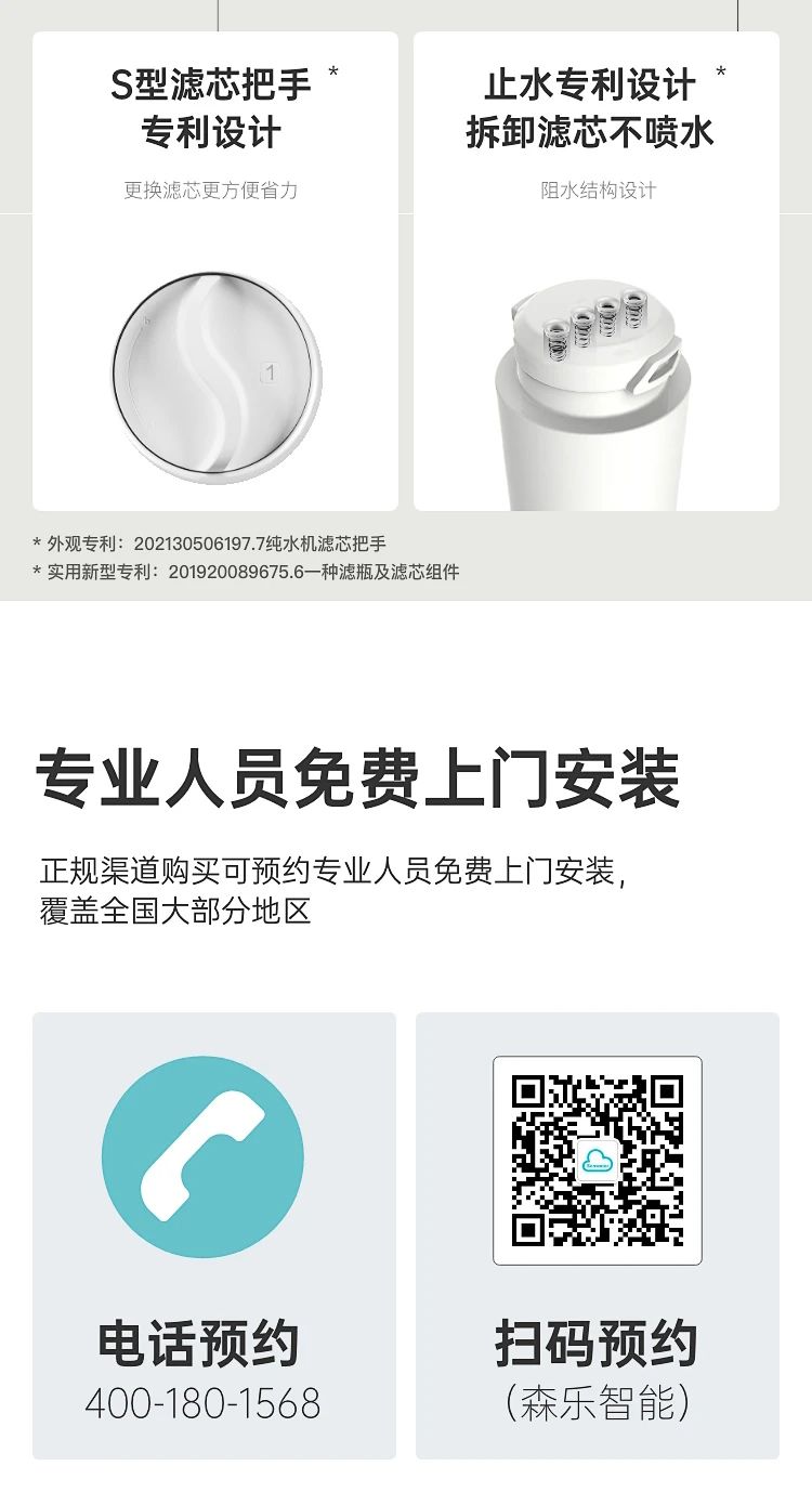 配合森乐自主开发的S+智能平台和专用的智能龙头,可轻松在手机或电脑上远程检查工作状态并进行管理,自动提示出水质量和滤芯寿命。