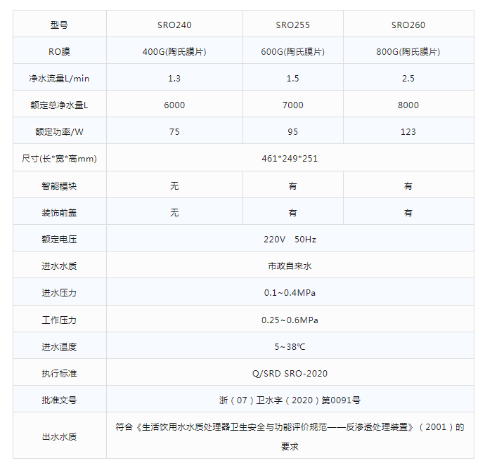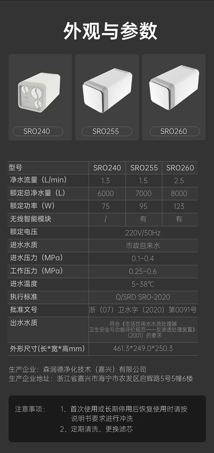 森乐·冰润SRO255是SRO200系列纯水机中的明星产品,基于获得德国iF和美国IDEA双项设计大奖的设计,采用DOW原装膜片卷制的600G大流量RO膜,使用专业长寿命设计和控制系统,可以自动进行多种情况的脉冲式冲洗。